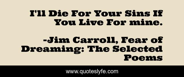 This page presents the quote "I'll Die For Your Sins If You Live For mine.". Author of this quote is Jim Carroll, Fear of Dreaming: The Selected Poems. This quote is about poetry, sins,.