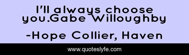 "Hope Collier, Haven Quotes." Quoteslyfe.com, 2025. Sat. 06 Dec. 2025. <https://www.quoteslyfe.com/quote/I-ll-always-choose-you-Gabe-Willoughby-35555>.