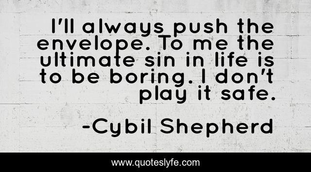 This page presents the quote "I'll always push the envelope. To me the ultimate sin in life is to be boring. I don't play it safe.". Author of this quote is Cybil Shepherd. .
