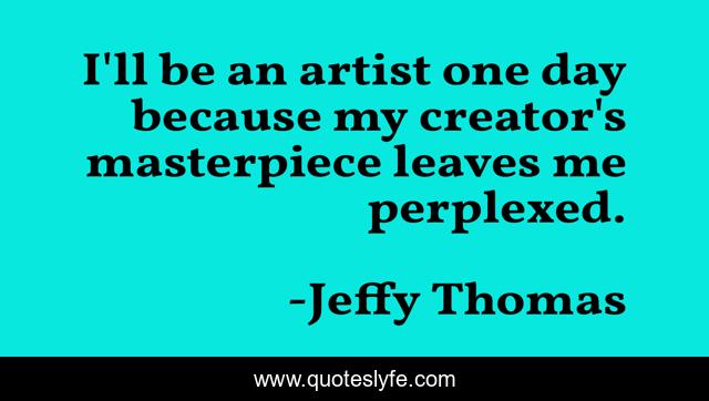 This page presents the quote "I'll be an artist one day because my creator's masterpiece leaves me perplexed.". Author of this quote is Jeffy Thomas. .