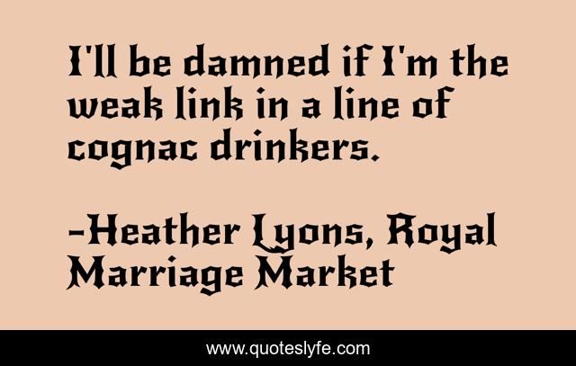 "Heather Lyons, Royal Marriage Market Quotes." Quoteslyfe.com, 2025. Fri. 05 Dec. 2025. <https://www.quoteslyfe.com/quote/I-ll-be-damned-if-I-m-84889>.