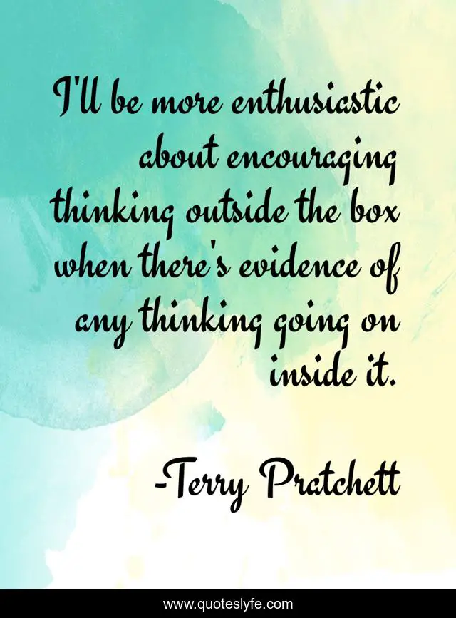 This page presents the quote "I'll be more enthusiastic about encouraging thinking outside the box when there's evidence of any thinking going on inside it.". Author of this quote is Terry Pratchett. .