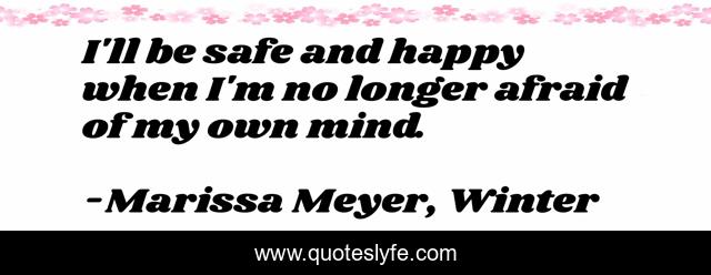 This page presents the quote "I'll be safe and happy when I'm no longer afraid of my own mind.". Author of this quote is Marissa Meyer, Winter. This quote is about winter, lunar-chronicles,.