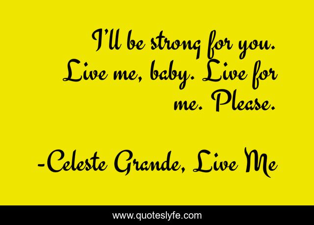 This page presents the quote "I’ll be strong for you. Live me, baby. Live for me. Please.". Author of this quote is Celeste Grande, Live Me. This quote is about new-adult, romance-contemporary,.