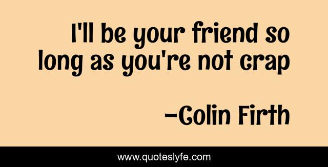 This page presents the quote "I'll be your friend so long as you're not crap". Author of this quote is Colin Firth. .
