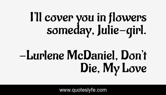 This page presents the quote "I'll cover you in flowers someday, Julie-girl.". Author of this quote is Lurlene McDaniel, Don't Die, My Love. This quote is about true-love, luke, julie, flowers,.