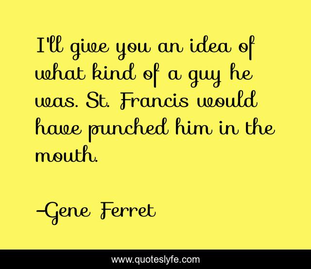 This page presents the quote "I'll give you an idea of what kind of a guy he was. St. Francis would have punched him in the mouth.". Author of this quote is Gene Ferret. .