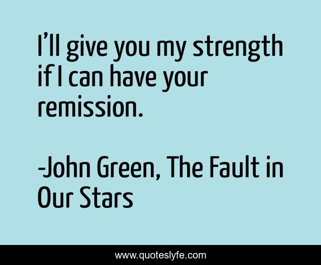 This page presents the quote "I’ll give you my strength if I can have your remission.". Author of this quote is John Green, The Fault in Our Stars. This quote is about cancer, remission,.
