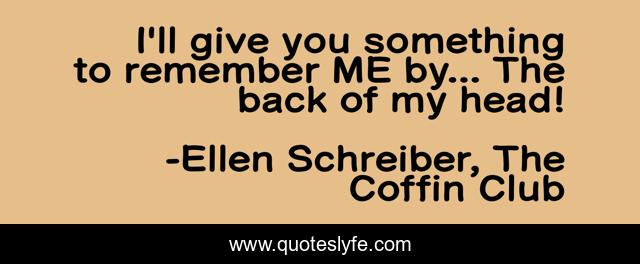 "Ellen Schreiber, The Coffin Club Quotes." Quoteslyfe.com, 2025. Mon. 08 Dec. 2025. <https://www.quoteslyfe.com/quote/I-ll-give-you-something-to-remember-190234>.