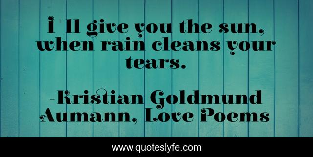 This page presents the quote "I'll give you the sun, when rain cleans your tears.". Author of this quote is Kristian Goldmund Aumann, Love Poems. This quote is about love, affection,.