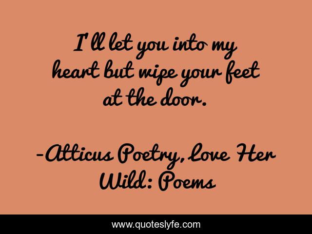 This page presents the quote "I’ll let you into my heart but wipe your feet at the door.". Author of this quote is Atticus Poetry, Love Her Wild: Poems. This quote is about atticus, love, instagram, her, atticuspoetry, poetry, quotes, wild, poems,.