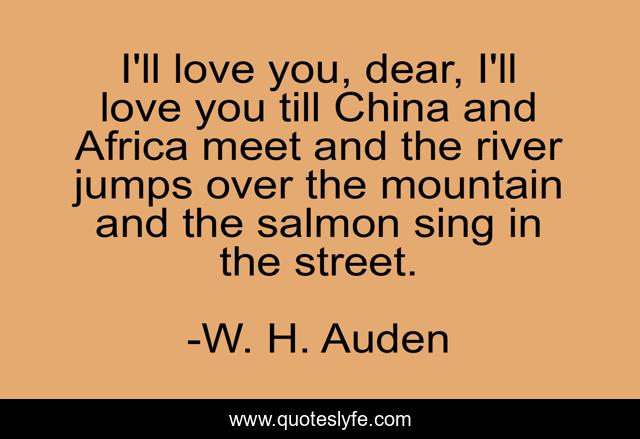 This page presents the quote "I'll love you, dear, I'll love you till China and Africa meet and the river jumps over the mountain and the salmon sing in the street.". Author of this quote is W. H. Auden. This quote is about mountain, river, love, affection,.
