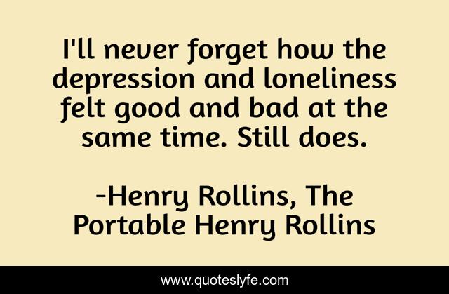 This page presents the quote "I'll never forget how the depression and loneliness felt good and bad at the same time. Still does.". Author of this quote is Henry Rollins, The Portable Henry Rollins. This quote is about loneliness, depression,.
