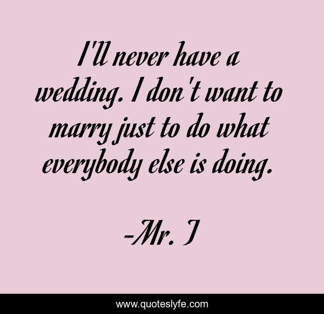 This page presents the quote "I'll never have a wedding. I don't want to marry just to do what everybody else is doing.". Author of this quote is Mr. T. .