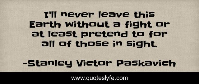 This page presents the quote "I'll never leave this Earth without a fight or at least pretend to for all of those in sight.". Author of this quote is Stanley Victor Paskavich. .