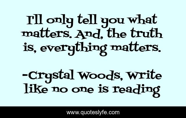 "Crystal Woods, Write like no one is reading Quotes." Quoteslyfe.com, 2025. Fri. 05 Dec. 2025. <https://www.quoteslyfe.com/quote/I-ll-only-tell-you-what-matters-166186>.