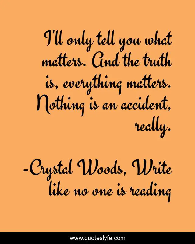 "Crystal Woods, Write like no one is reading Quotes." Quoteslyfe.com, 2025. Fri. 05 Dec. 2025. <https://www.quoteslyfe.com/quote/I-ll-only-tell-you-what-matters-203650>.