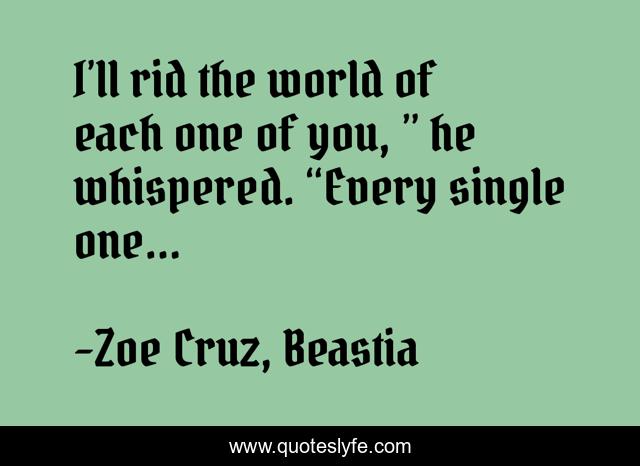 "Zoe Cruz, Beastia Quotes." Quoteslyfe.com, 2025. Sun. 07 Dec. 2025. <https://www.quoteslyfe.com/quote/I-ll-rid-the-world-of-each-45614>.