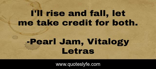 This page presents the quote "I'll rise and fall, let me take credit for both.". Author of this quote is Pearl Jam, Vitalogy Letras. This quote is about rise, fall,.