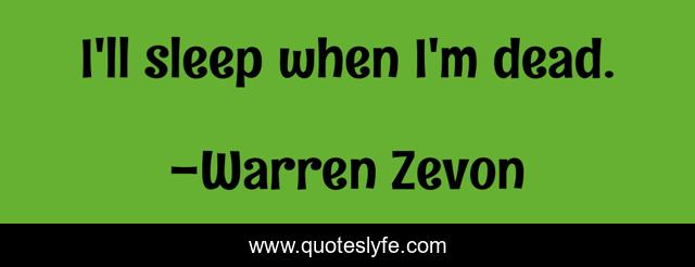 "Warren Zevon Quotes." Quoteslyfe.com, 2025. Fri. 05 Dec. 2025. <https://www.quoteslyfe.com/quote/I-ll-sleep-when-I-m-dead-294925>.