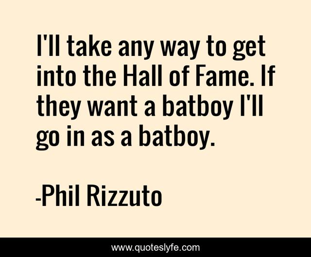 This page presents the quote "I'll take any way to get into the Hall of Fame. If they want a batboy I'll go in as a batboy.". Author of this quote is Phil Rizzuto. .