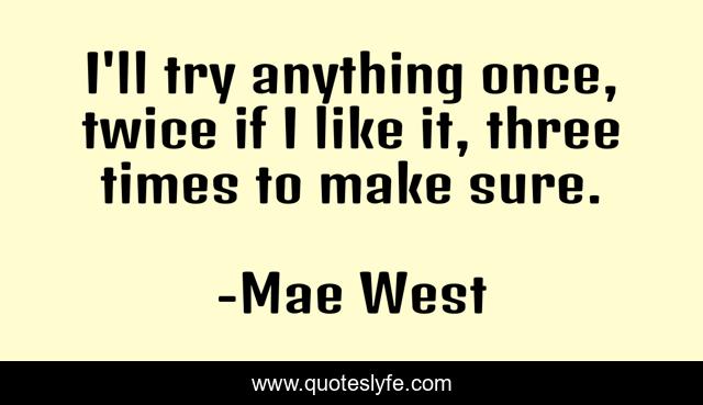 This page presents the quote "I'll try anything once, twice if I like it, three times to make sure.". Author of this quote is Mae West. This quote is about life, humor,.