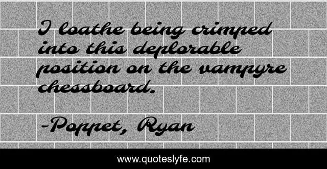 This page presents the quote "I loathe being crimped into this deplorable position on the vampyre chessboard.". Author of this quote is Poppet, Ryan. This quote is about paranormal-romance, vampire-romance,.
