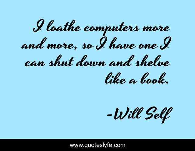 This page presents the quote "I loathe computers more and more, so I have one I can shut down and shelve like a book.". Author of this quote is Will Self. This quote is about down, book, i can,.
