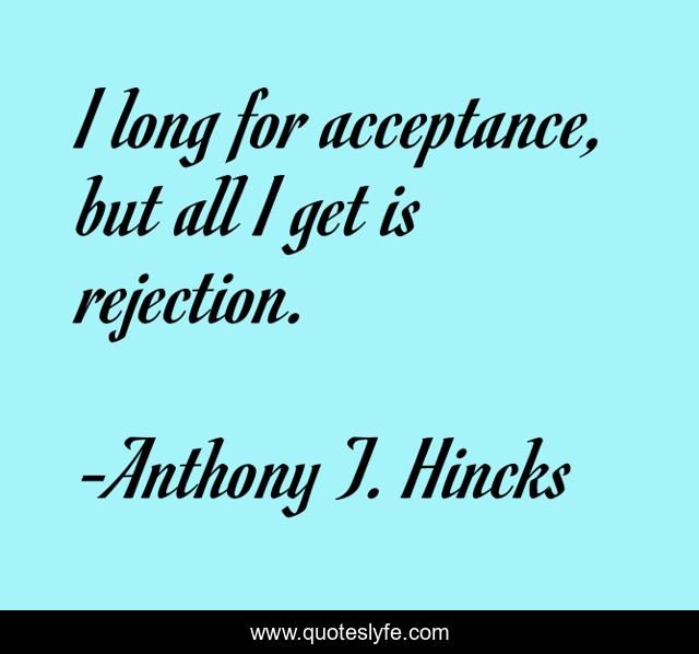 This page presents the quote "I long for acceptance, but all I get is rejection.". Author of this quote is Anthony T. Hincks. This quote is about life, philosophy, love, get, acceptance, long-for, rejection, affection,.