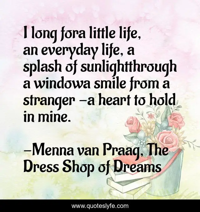 "Menna van Praag, The Dress Shop of Dreams Quotes." Quoteslyfe.com, 2025. Tue. 09 Dec. 2025. <https://www.quoteslyfe.com/quote/I-long-fora-little-life-an-everyday-158230>.