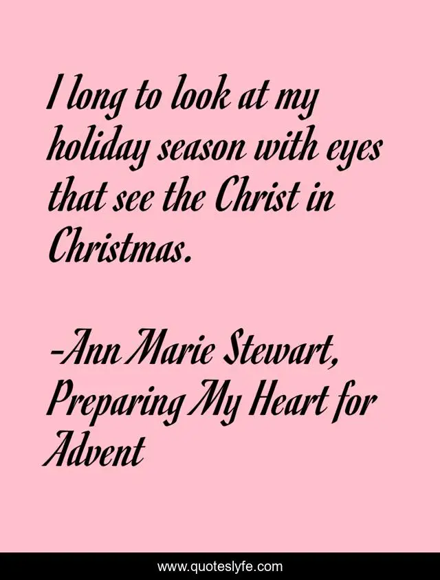 "Ann Marie Stewart, Preparing My Heart for Advent Quotes." Quoteslyfe.com, 2025. Sat. 06 Dec. 2025. <https://www.quoteslyfe.com/quote/I-long-to-look-at-my-holiday-220642>.