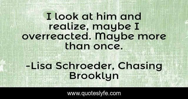 This page presents the quote "I look at him and realize, maybe I overreacted. Maybe more than once.". Author of this quote is Lisa Schroeder, Chasing Brooklyn. This quote is about parents, maybe-it-isn-t-too-late, misunderstandings,.