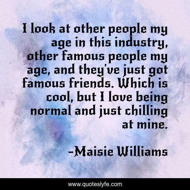 This page presents the quote "I look at other people my age in this industry, other famous people my age, and they've just got famous friends. Which is cool, but I love being normal and just chilling at mine.". Author of this quote is Maisie Williams. This quote is about love, age, friends, affection,.