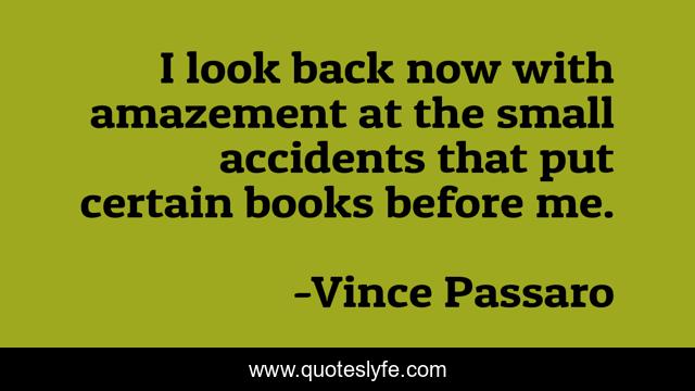 This page presents the quote "I look back now with amazement at the small accidents that put certain books before me.". Author of this quote is Vince Passaro. .
