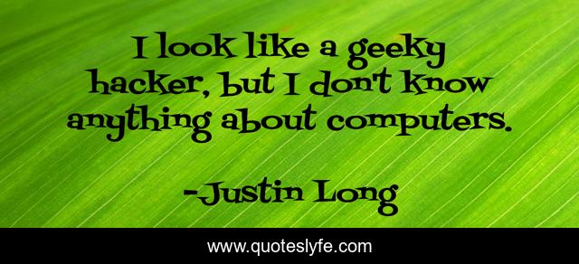 This page presents the quote "I look like a geeky hacker, but I don't know anything about computers.". Author of this quote is Justin Long. This quote is about hacker, look,.