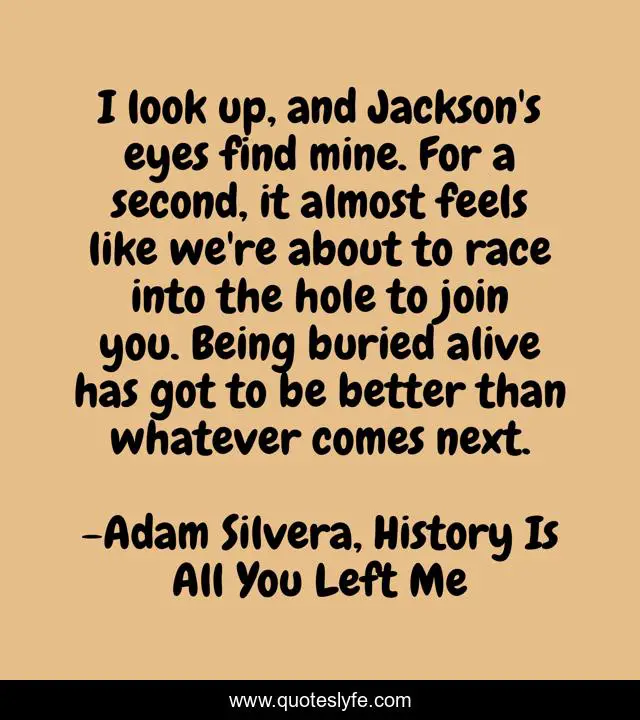 "Adam Silvera, History Is All You Left Me Quotes." Quoteslyfe.com, 2025. Fri. 05 Dec. 2025. <https://www.quoteslyfe.com/quote/I-look-up-and-Jackson-s-eyes-123370>.