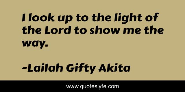 This page presents the quote "I look up to the light of the Lord to show me the way.". Author of this quote is Lailah Gifty Akita. This quote is about light, path, spirituality,.