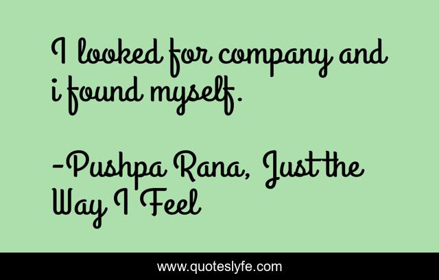 "Pushpa Rana, Just the Way I Feel Quotes." Quoteslyfe.com, 2025. Fri. 05 Dec. 2025. <https://www.quoteslyfe.com/quote/I-looked-for-company-and-i-found-242193>.