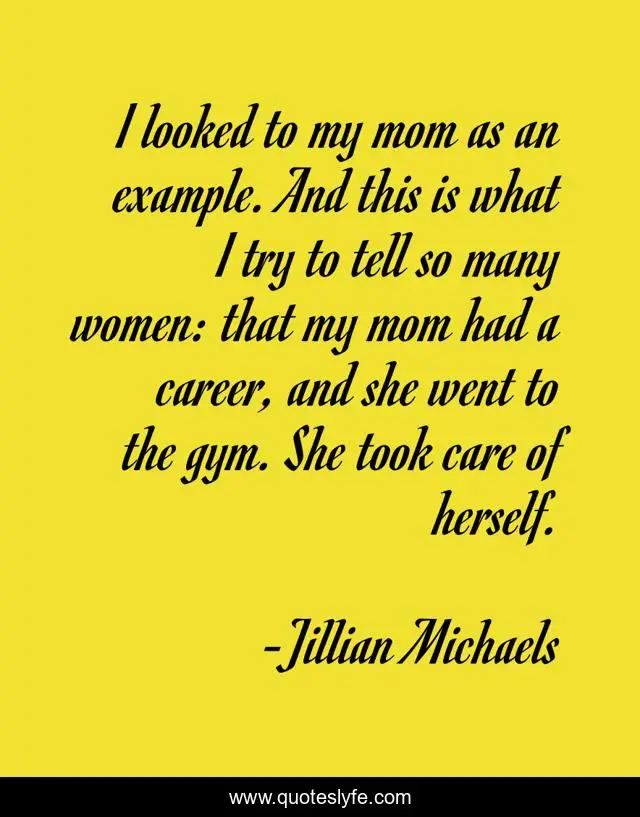 This page presents the quote "I looked to my mom as an example. And this is what I try to tell so many women: that my mom had a career, and she went to the gym. She took care of herself.". Author of this quote is Jillian Michaels. This quote is about career, women, care,.