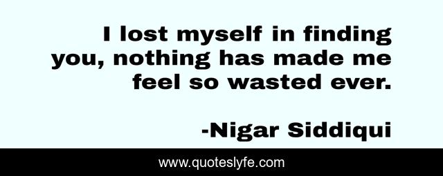 This page presents the quote "I lost myself in finding you, nothing has made me feel so wasted ever.". Author of this quote is Nigar Siddiqui. .