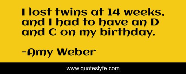 This page presents the quote "I lost twins at 14 weeks, and I had to have an D and C on my birthday.". Author of this quote is Amy Weber. This quote is about weeks, twins, lost,.