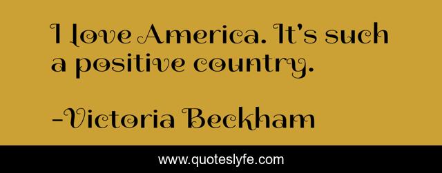 This page presents the quote "I love America. It's such a positive country.". Author of this quote is Victoria Beckham. This quote is about country, america, love, affection,.