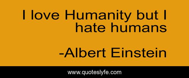 This page presents the quote "I love Humanity but I hate humans". Author of this quote is Albert Einstein. This quote is about einstein, humans, humanity, people,.