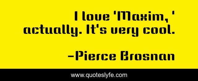 This page presents the quote "I love 'Maxim, ' actually. It's very cool.". Author of this quote is Pierce Brosnan. This quote is about love, maxim, affection, actually,.