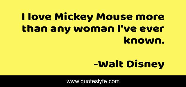 This page presents the quote "I love Mickey Mouse more than any woman I've ever known.". Author of this quote is Walt Disney. .