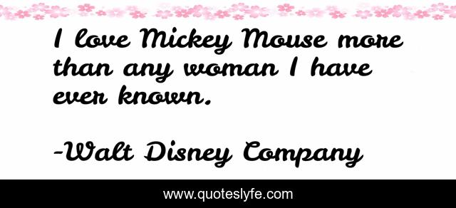 This page presents the quote "I love Mickey Mouse more than any woman I have ever known.". Author of this quote is Walt Disney Company. .