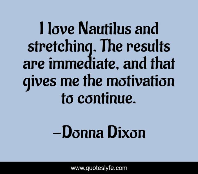 This page presents the quote "I love Nautilus and stretching. The results are immediate, and that gives me the motivation to continue.". Author of this quote is Donna Dixon. This quote is about me, motivation, love, affection,.