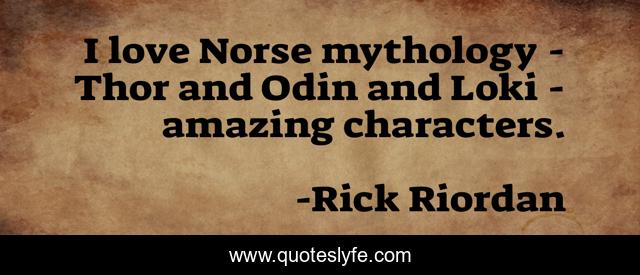 This page presents the quote "I love Norse mythology - Thor and Odin and Loki - amazing characters.". Author of this quote is Rick Riordan. This quote is about mythology, love, characters, affection,.