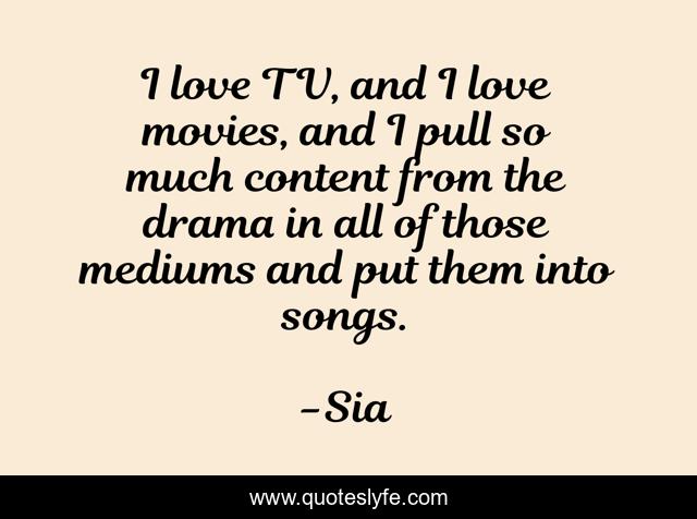 This page presents the quote "I love TV, and I love movies, and I pull so much content from the drama in all of those mediums and put them into songs.". Author of this quote is Sia. This quote is about content, drama, love, affection,.