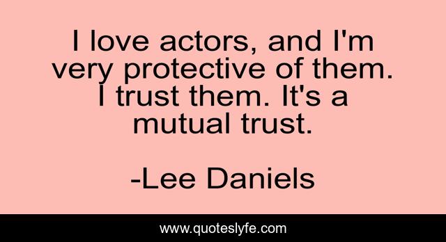 This page presents the quote "I love actors, and I'm very protective of them. I trust them. It's a mutual trust.". Author of this quote is Lee Daniels. This quote is about mutual, protective, love, affection,.